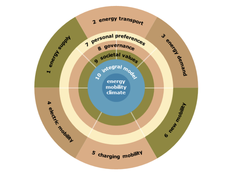 All das wird mit dem Integralmodell (mein Baby, zusammen mit Prof. Floor Alkemade) zusammengefügt. Dieses Modell ermöglicht es uns, alle Inputs der anderen Arbeitspakete zu sammeln und in Szenarien zu quantifizieren, mit denen politische Entscheidungsträger die Herausforderungen in den Bereichen Klima, Energie und Mobilität angehen können.