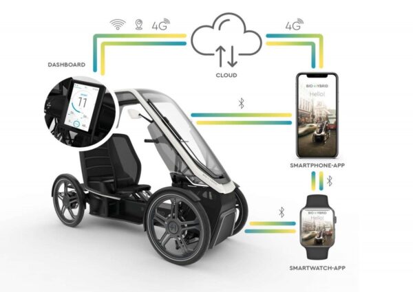 Schäffler zeigten auf der CES eigene automobile Konzepte. Boschs Shuttle-Studie feierte auf der Messe Premiere, ZF zeigte sein Robo-Taxi, Continental war ebenfalls mit seinem Shuttle vertreten und Schaeffler aus Herzogenaurach zeigte neben Neuigkeiten für sein modulares Shuttle-System Mover auch seriennahe Versionen seines Bio-Hybrids – quasi eine Kreuzung zwischen E-Bike und Kleist-Auto: vier Räder, Dach und Windschutzscheibe, tauglich für Straße und Radweg sowie führerschein- und zulassungsfrei zu betreiben. Der elektrische Antrieb unterstützt bis zu einer Geschwindigkeit von 25 km/h. „Smartphone und Smartwatch sind ins Konzept integriert“, sagt Tim Hosenfeldt, Leiter des Bereiches Zentrale Innovation bei Schaeffler. „So werden sich in Zukunft Funktionen über eine eigene Bio-Hybrid-App steuern lassen und dem Fahrer das Leben erleichtern.“