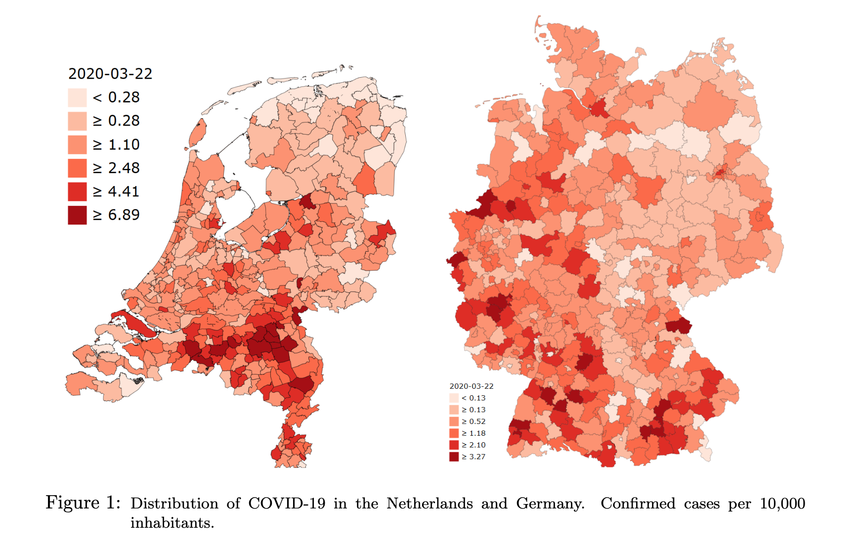Natürlich bestätigt die Studie viele Vorannahmen darüber, wie sich ein Virus räumlich verbreitet, das durch menschlichen Kontakt übertragen wird. Andree: „Es ist jedoch erstaunlich, dass die höchste Falldichte in den Niederlanden in Brabant liegt, während die Falldichte in großen Städten wie Amsterdam und Rotterdam geringer ist. Obwohl Brabant nicht die am dichtesten besiedelte Provinz ist, leistet sie doch den größten Beitrag zum nationalen industriellen BIP“. Innerhalb der Provinz leistet die Subregion Südost-Nord-Brabant den größten Beitrag zum industriellen BIP. Dieses Gebiet erstreckt sich ungefähr über den auf der Karte dargestellten Cluster COVID-19.