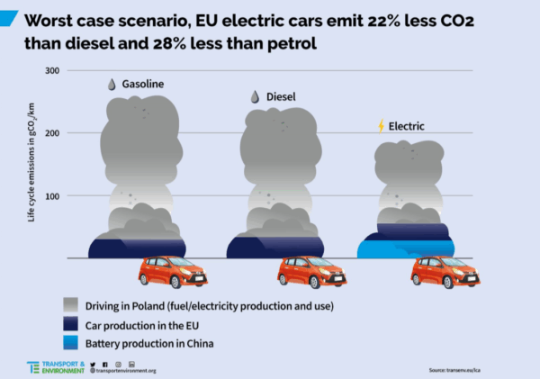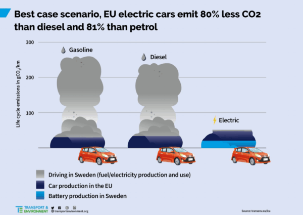 Neben dem „normalen“ Parametern berücksichtigt Transport & Umwelt auch den Energiemix, mit dem Elektroautos fahren. „Die meisten Studien befassen sich nur damit, wie Elektrizität zum Zeitpunkt des Verkaufs erzeugt wird. Sie ignorieren die Tatsache, dass die Nutzung von Ökostrom jedes Jahr zunimmt und billiger wird, so dass man einen schiefen Vergleich bekommt. Die vorliegende Studie trägt dem jedoch Rechnung. Die Forscher lassen nichts umbeachtet und versuchen, so lückenlos wie möglich zu arbeiten. Sie haben auch die aktuellsten Zahlen zur Batterieherstellung aufgenommen und ignorieren nicht die Tatsache, dass auch diese immer nachhaltiger werden wird.“
