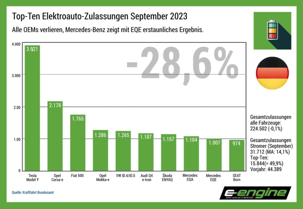Der August 2023 markierte einen Rekord bei den Zulassungen von Elektrofahrzeugen in Deutschland. Mit einem Plus von 170,7 Prozent zum Vorjahresmonat erreichten die Stromer-Zulassungen in diesem Monat 31,7% Marktanteil an den Gesamt-Autozulassungen. Die Fangemeinde jubelte.