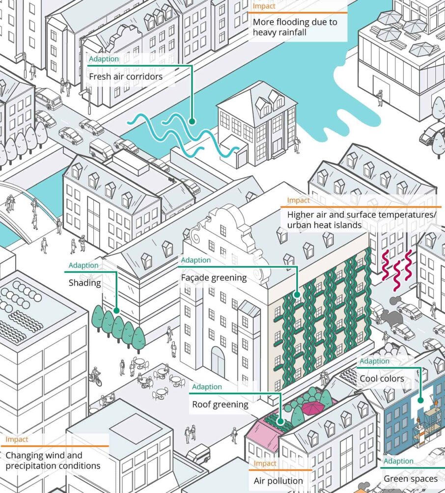 Der Klimawandel stellt auch Stadtplanerinnen und Stadtplaner vor Herausforderungen. Forschende erwarten in Zukunft vermehrt lange Hitzeperioden, Starkregen und Unwetter. »Dicht besiedelte urbane Räume sind besonders anfällig für diese extremen Wetterlagen. Diese belasten nicht nur das Wohlbefinden. Für Menschen, die schwächer oder gesundheitlich angeschlagen sind, beispielsweise in Seniorenheimen, Kindertagesstätten oder Krankenhäusern, kann das extreme Wetter auch gefährlich sein«, erklärt Matthias Winkler, Experte für Hygrothermik am Fraunhofer IBP. Deshalb arbeiten Städte und Kommunen intensiv an der Planung baulicher Maßnahmen, die geeignet sind, die Folgen des Klimawandels abzumildern, das Klima in der Stadt bis zu einem gewissen Grade beherrschbar zu machen und damit die Lebensqualität zu erhalten und auszubauen.