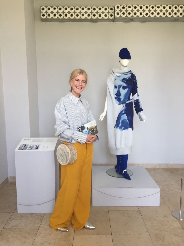 Die Brücke zwischen Vergangenheit und Gegenwart schlägt die junge Modedesignerin Tess van Zalinge, die eigens für die Ausstellung ein Kleid aus dem berühmten Gemälde “Mädchen mit der Perle” von van Vermeer anfertigte. Im Gegensatz zu bedruckten T-Shirts ist Van Zalinge’s Bild ins Kleid gestrickt, was sie jede Menge Kopfschmerzen gekostet hat. Inspiriert vom alten holländischen Delfter Blau ist ein Kleidungsstück entstanden, das nach Maß gefertigt wird. Der Preis für dieses moderne Meisterwerk: 3250 Euro.