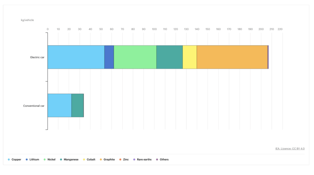 Der Verbrauch an kritischen Rohstoffen pro Elektroauto beträgt laut Internationaler Energie Agentur (iea) ein Vielfaches eines Verbrennerfahrzeugs. Der Nachschub an Lithium, Nickel, Kupfer und Co. könnte für die klimaneutrale Verkehrswende stocken, und damit die Kosten für Elektroautos weiter in die Höhe treiben. Zwar sind genügend Rohstoffe vorhanden, die wollen aber gefördert werden. Die derzeitigen Förderkapazitäten können dem kaum Rechnung tragen.