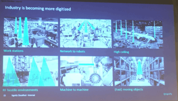 Im vergangenen Jahr begann Signify mit dem Bau von rund hundert LiFi-Anlagen in Bürogebäuden, Hotels, Zügen, Lagerhäusern und Elektronikunternehmen. Dort kommunizieren die Roboter über LiFi von einer Lampe an der Decke aus miteinander (wie bei Wieland Electronics in Deutschland). In diesem Jahr wird sich die Zahl der Projektanträge mehr als verdoppeln, sagte Huibers letzte Woche bei einer Präsentation für Ingenieure, die Mitglieder der Kivi-Gewerkschaft in Den Haag sind.