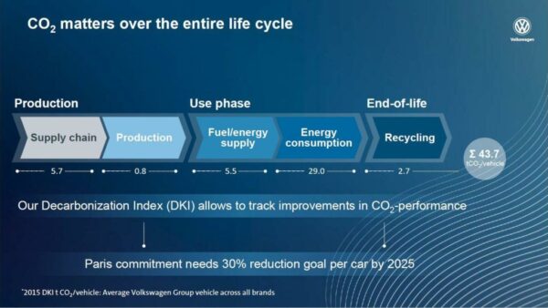 Bis zum Jahr 2020 will die Bundesregierung will die Treibhausgas-Emissionen um mindestens 40 % gegenüber 1990 senken. Bis 2050 soll Deutschland weitgehend treibhausgasneutral sein. Dieses Ziel, bis zum Jahr 2050 völlig CO2-neutral zu produzieren, hat sich auch der Volkswagen-Konzern gesetzt. Bereits im vergangenen Jahr veröffentlichte das Unternehmen zahlen zur CO2-Bilanz seiner Fahrzeuge. Von der Produktion über die Jahre der Nutzung bis hin zum Lebensende bzw. Recycling. Laut der Angaben von Volkswagen stößt ein Auto des Konzerns – VW, Audi, Porsche und Bentley – im Laufe seines Lebens durchschnittlich rund 44 Tonnen CO2 aus. Dabei schlägt alleine die Produktion mit rund einer Tonne zu Buche.
