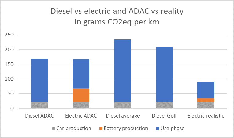 Update Auke Hoekstra am 18. November 2019: Ich habe die Dieselemissionen während der Fahrt reduziert von 235 g / km auf 212 g für einen durchschnittlichen Diesel und 187 g für einen Golf. Ein blöder Fehler meinerseits: Ich hatte vergessen, schwere Dieselmotoren in spritmonitor.de auszuschließen. Der aufmerksame Leser @kasparthommen hat mich darauf hingewiesen. Dies zeigt, dass es wichtig ist, transparente Berechnungen durchzuführen, damit andere Sie korrigieren können. Vielen Dank Kaspar!
