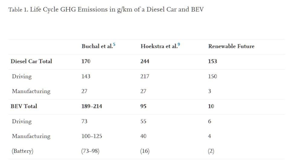 mangelndes Systemdenken: Mit einem Diesel kann man die Emissionen mit erneuerbaren Kraftstoffen um 40% senken. Mit erneuerbaren Energien aber um etwa 95%.