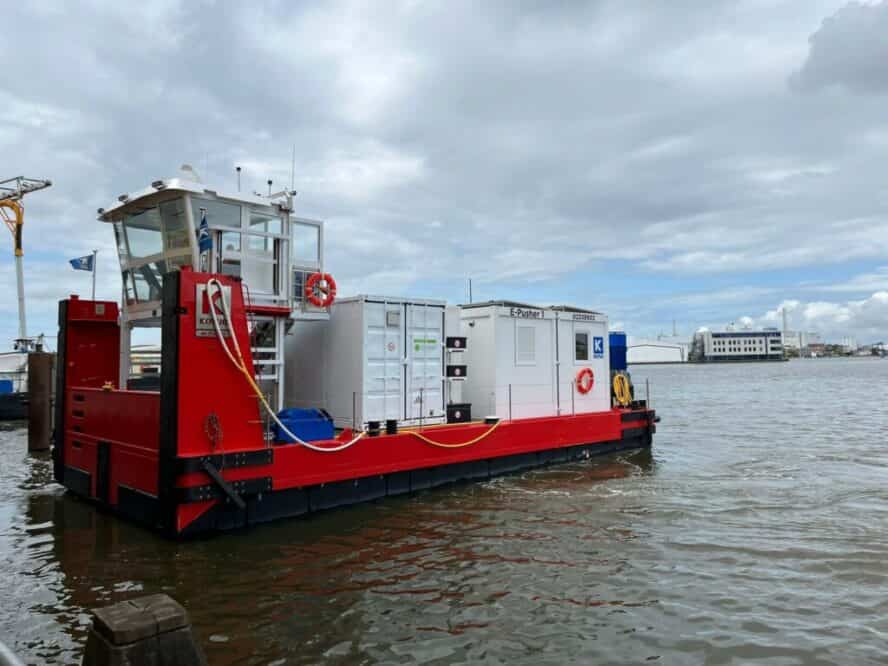 In Amsterdam port, a world-first: fully electric pusher boat equipped with onboard battery containers