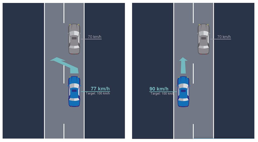 While people are better able to grasp a traffic situation in spatial terms and assess the associated dangers more ‘realistically’, the technology is impressive as far as road handing and maneuverability is concerned, explains Walch. It is therefore only logical to combine the strengths of humans and technology when it comes to overtaking actions. Otherwise, the vehicle would have to drive even further behind the slower vehicle that is in front. Or else the driver would have to overtake ” manually. ” In other words, the human driver has to make the decision to overtake, but the maneuver itself is carried out by the vehicle. For this transition a “handover” is necessary, which enables a switch from automatic to manual operation.