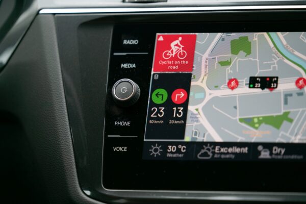 At the core of the project is the DIGINET-PS reference framework. It was designed at TU Berlin and creates the conditions for the test circuit, vehicles and control center to be able to communicate with each other. More than 100 sensors are installed along the test route which measure weather conditions, traffic volume, parking conditions, environmental pollution as well as road conditions. This data is anonymously analyzed and evaluated on the road and in the control center by specially developed software. This enables forecasts to be made across a wide variety of topics. The data is shared with vehicles connected to the network using a communication infrastructure based on ITS-5G and 4G. This makes it possible to improve perception and decision-making process for various critical maneuvers and application scenarios. This innovative intelligent infrastructure allows vehicles to warn or even predict accident-prone situations with cyclists on the road, for example.
