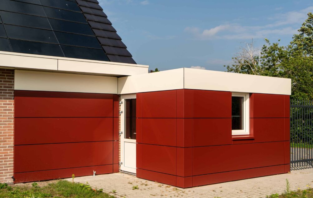 In Eindhoven, three homes owned by the Sint Trudo housing corporation were fitted with façade elements and garden sheds. Each home was provided with 15 square meters of façade solar collectors, spread across the front and back of the house or shed. Once completed, all three homes were awarded the A++++ label.