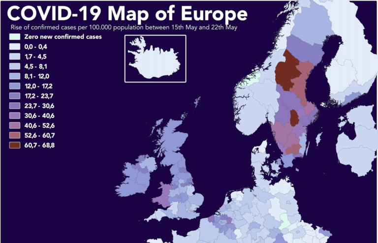 Mapping corona throughout Europe; first wave is almost over, except in Sweden