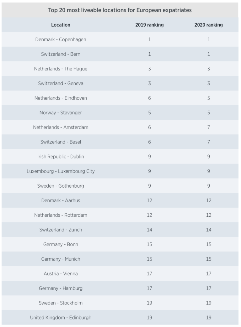 Global liveability report: Dutch and Swiss cities ideal for European expats