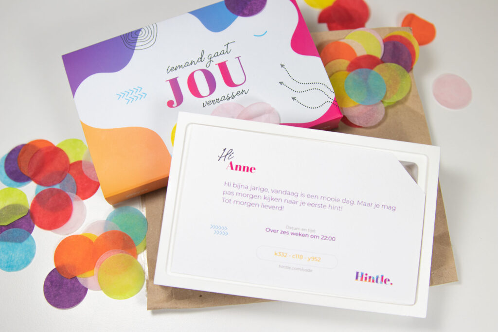 Via Hintle, as the platform is called, users can conveniently send an invitation for an outing or an event. First, a package is dropped on the recipient’s doormat with the first clue and the event’s date. In addition, the recipient receives a code which allows them to ask for several clues online. “This way you can really present an experience as a gift. That’s much more fun than a gift from the store,” says Miedema. “For me and my girlfriend, the anticipation surrounding the concert made it a unique gift. It felt extra special even though we go to concerts and festivals more often.”