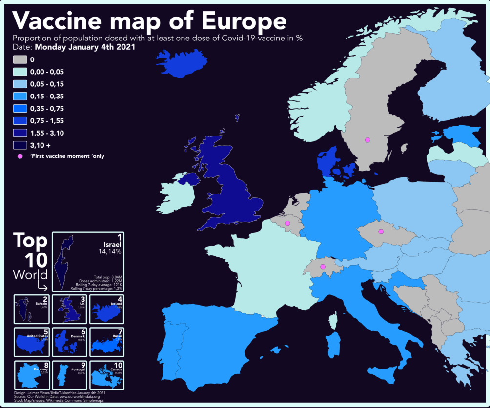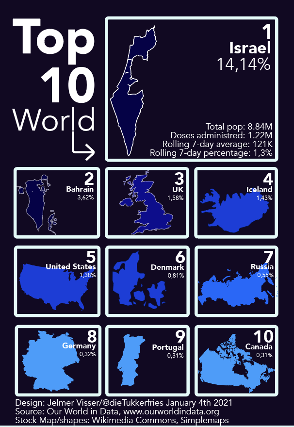 Israel, which looked so hopeless at the beginning of October, shows like no other country how to learn from their colossal corona errors from the past. If they continue at this pace, they will have completed their entire vaccination campaign as early as April.