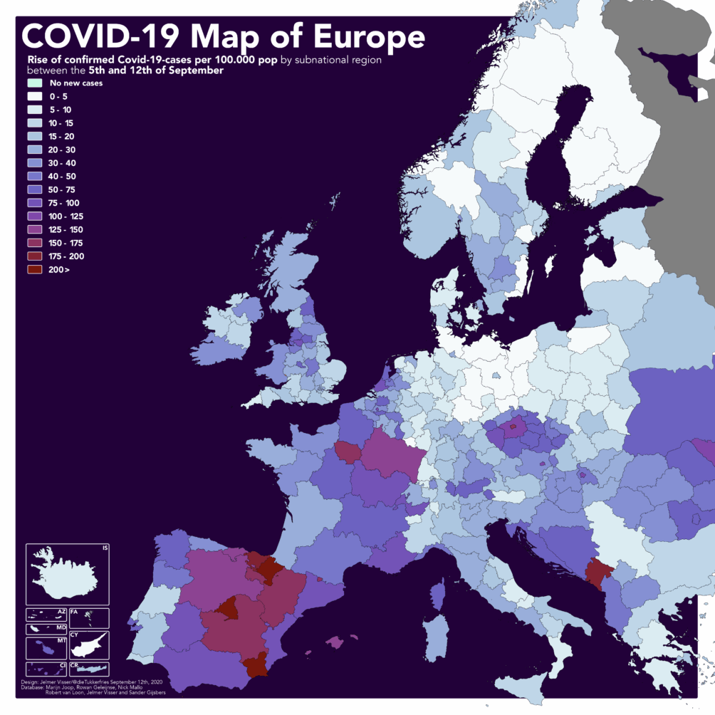 To start with, here is the latest weekly map of Europe. On the sliders below we compared 5 to 12 September with the situation of two weeks ago and the first week of August. The trend is quite clear.