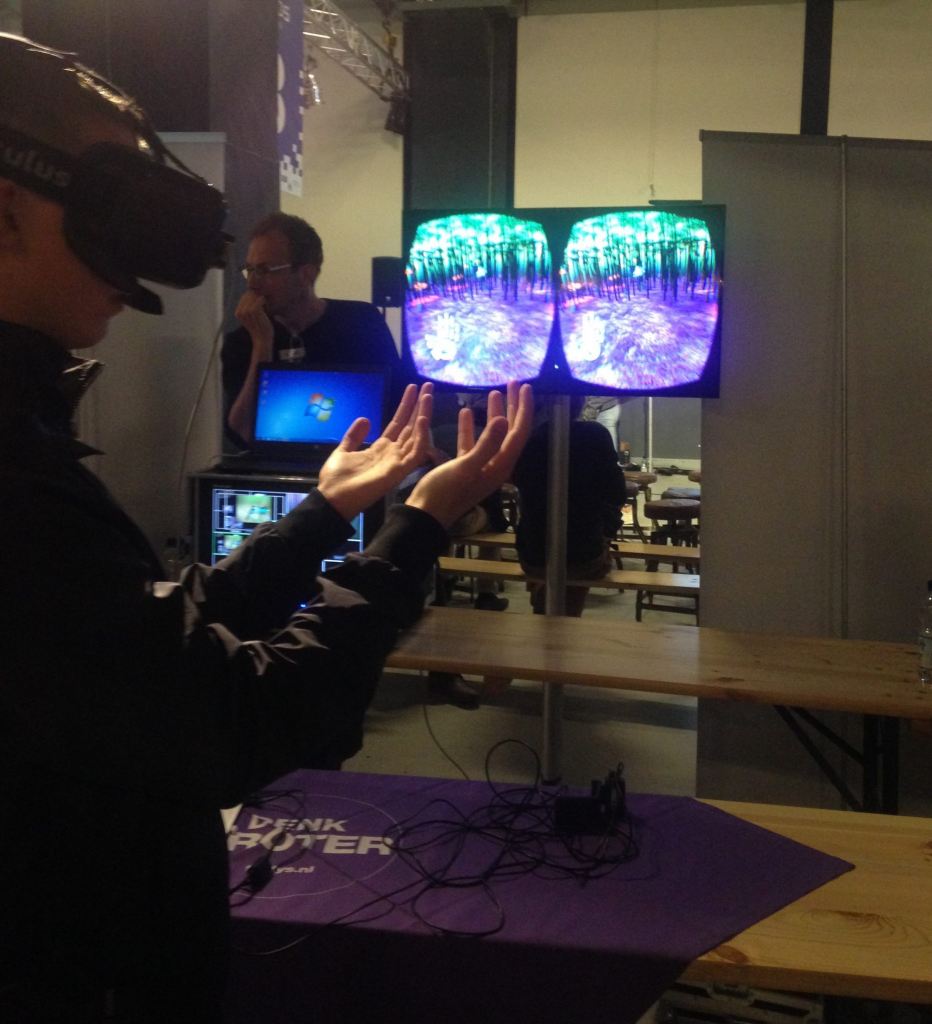 Big crowds at the VR gaming stands, students with big glasses on their heads, slapping creatures in the virtual world. “It’s not that we are here only to find new students”, says Jack Hoefnagel of Fontys, where he is a lecturer in game design and technology. “To introduce children to ‘my’ world is today’s goal, because in a few years time this is the norm.” He must dive for the gestures of a boy, wildly waving his arms to graze a monster, while on his screen luminous balls are fired as bullets out of his hands. Hoefnagel continues: “Now we are trying everything in VR, but it is becoming increasingly serious. This technology is still in its infancy, which means that there are lots of new things to come, like virtual cinema.”