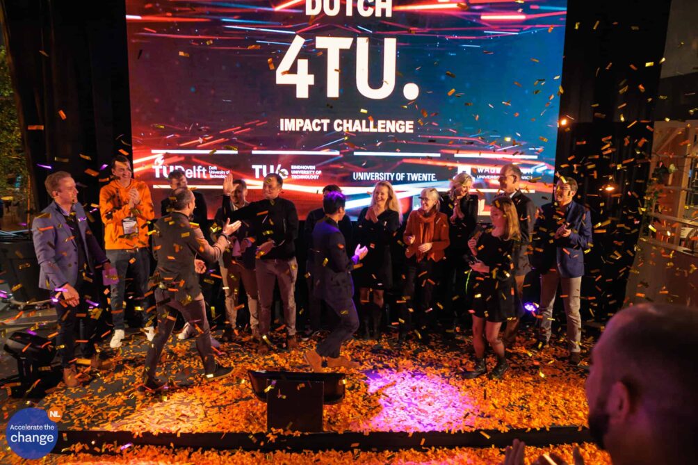 In the 4TU Impact Challenge, the best student teams and start-ups from the four Dutch technical universities get to compete against each other. Each university already held its own preliminary round back in spring. From these, two student teams were chosen per university. They did a boot camp on entrepreneurship to prepare them for the grand final. That is where the start-ups pitched their idea to an independent expert jury.