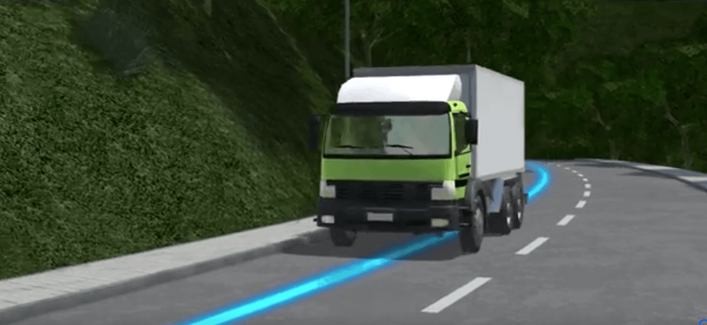 Approximately two kilometers of electric railway is installed along public road 893, between the Arlanda Cargo Terminal, near Stockholm Airport, and the Rosersberg logistics business park. The electrified road works by transferring energy from a rail in the road with a movable arm to the vehicle. That is similar to a toy racing track. The arm detects the position of the rail in the road and as long as the vehicle is above the rail, the contact is in a lowered position, so it can perform its task of charging the vehicle.