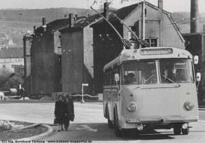 60s. In most cities, they were gradually replaced by the clearly more flexible diesel buses. Of the remaining trolleybus systems, this has the longest tradition in Eberswalde. Here the so-called “Strippenexpress” runs since 1940. In Esslingen at the Neckar, they were put into service in 1944. Die Solingen “Stangentaxis” were added in 1952. Since then, the rolling stock in these cities has been repeatedly renewed and modernized.
