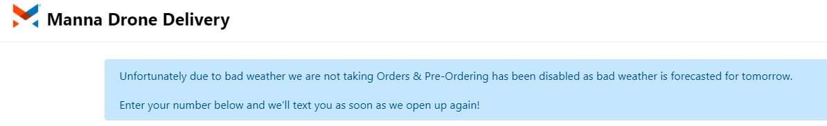 At the time of writing, the website is unable to take deliveries due to forecasts of “bad weather.” It is unclear whether it is the weather or the technical limitations of the drones that is causing the delivery stoppages. However, AccuWeather is forecasting “a little rain” and 37 km winds on the dates in question, which, according to the Beaufort scale is between a moderate and strong breeze -enough to make small trees sway.