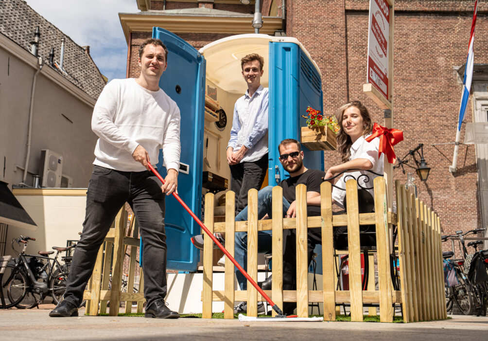 For instance, this young company set down a one-square-meter Dixi toilet in the city center of Den Bosch (formally known as ‘s-Hertogenbosch) this summer, which they had turned into a mini-home. The inventory spoke for itself: jars in the spice rack with labels like ‘essence of very expensive housing’ and ‘ground-up worries’. It was a statement with a bit of a wink to draw attention to the problems of the overheated housing market. And it worked. The municipality of Den Bosch took active measures to find solutions. Floris Kimpel, one of the founders, tells us more about Bedrijf de Liefde in this instalment of start-up of the day.