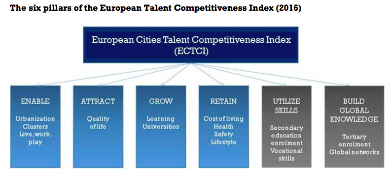 The list, which was announced on December 14 in Bilbao, was established by comparing the cities on six specific ‘pillars’. Everything revolves around the power of the city to attract talent. Depla: “Because of all the ‘golden hands and brains’ in our region, the enterprises and knowledge institutes are successful. To remain a success, we will continuously need new talents. The GTCI assessment can be of great help to attract them.”
