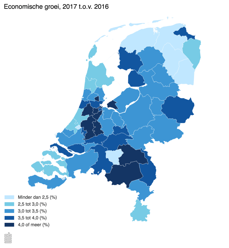 In Amsterdam, the industry grew too, but the municipality is less dependent on this sector for its economy. Due to growth in wholesale and retail trade, Amsterdam’s economy did grow above average at 3.9 percent. The five largest cities in the Netherlands have all benefited from the relatively strong presence of wholesale and retail trade.