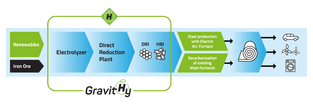 “GravitHy will support the emissions reduction of this industry by generating and using green and low-carbon hydrogen to produce iron”, Ruiter says.