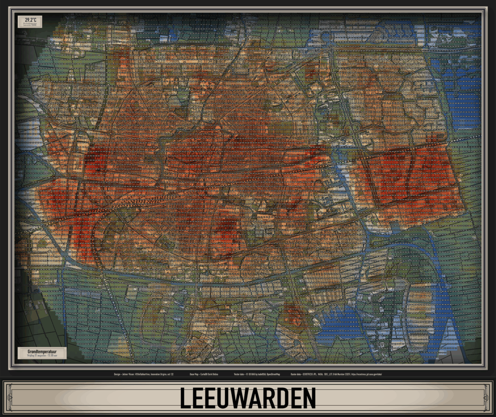 Not only did the impact of so many trees transform the streetscape, theoretically it should also be detectable on the ECOSTRESS satellite measurements that have been used to create many a city map over the past period. Nevertheless, even in this special episode we will begin with an overall picture. Has the Frisian capital managed to master the heat in its streets even in the absence of a mobile jungle on wheels? Not exactly.