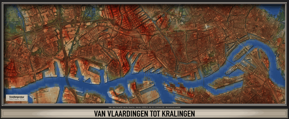 In order to check whether there is not a smaller specimen of a heat island tucked away after all, the interactive tool above can be used to zoom in on a street level. In any case, Rotterdammers do not really seem to have any large heat islands in the inner city. Even though the 010 area was roughly the same in terms of air temperature on 12 August and its population, the above map makes it easy to find areas where the mercury on the ground surface rose above 45 °C.