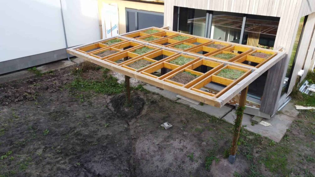 One of the three prototypes named “The Square” contains sedum containers on the roof that can collect up to 155 liters of water. Tests have shown that The Square can lower the temperature by 9°C on hot summer days.