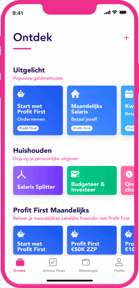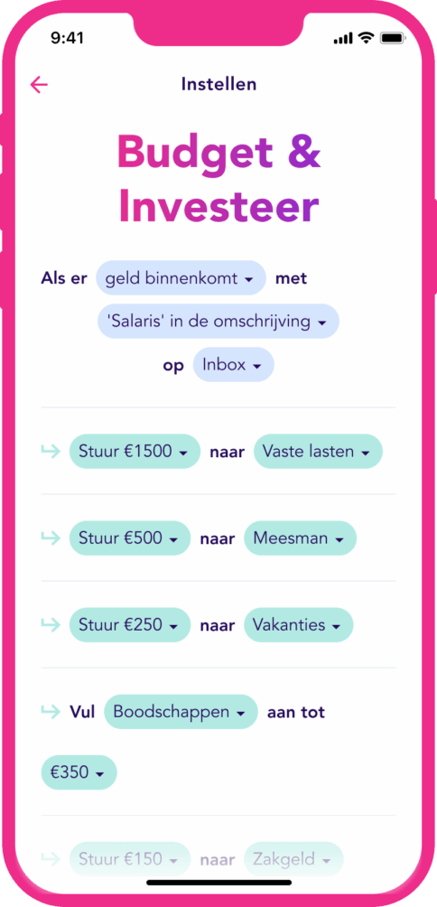 “An app and payment service provider that enables users to link all their bank accounts. Our system can recognize all incoming amounts: invoice amounts, mortgage interest refunds, Tikkies, child support, etc. It also recognizes what should happen next with those sumsy, because users are able to set a certain ‘flow’. They can instruct the system to do certain tasks. For example: transfer ten percent from the incoming account to a savings account for a trip around the world. Or automatically transfer the VAT and income tax from an invoice amount to matching ‘piggy banks’. As you can hear, we work with the concept of piggy banks. Based on the idea of grandpa and grandma who had her savings in a money tin for various expenses. Except we do that digitally.”