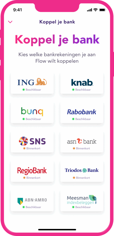 “As far as the technology is concerned, we want to offer an AI version of the app soon. This means learning from people’s financial behavior by using artificial intelligence. Nobody has those insights yet, banks only see what people do within their own bank, whereas Flow is linked to all banks. We want to use that knowledge for the consumers of tomorrow. They are less inclined to arrange things themselves. At the moment, the system is basically still a bit like cruise control with Google maps. Ultimately, we want to build a Tesla without a steering wheel: users are in control and set their own goals, but the system determines how they get there.”