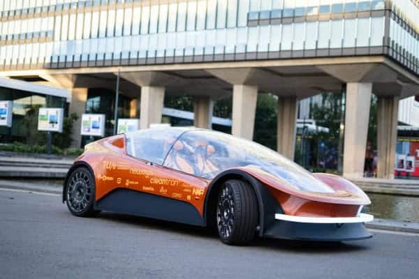 His year’s car was called Noah. A completely different model than Phoenix, but they have the sustainable aspect in common. Both cars are fully electric. Plus, “it’s a biobased car with composites made from flax fibers and plastic made from sugar beet.”