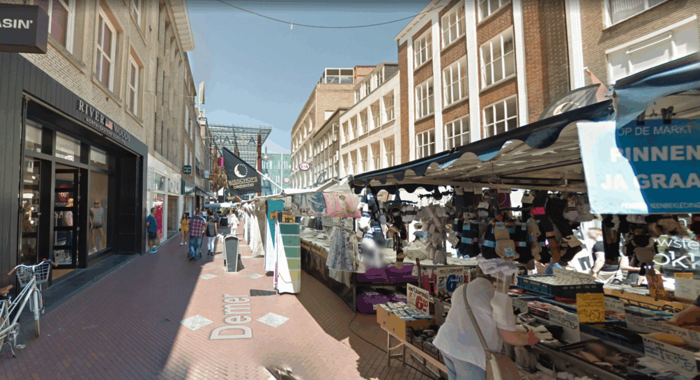 Apart from the fact that the temperatures are considerably lower than in Arnhem and Enschede, the area with very high values is also much more limited in terms of size. The Dommelstraat, a parking lot on Keizersgracht and the narrow Demer shopping street are the (moderate) hotspots here. The Anne Frank Plantsoen, the garden of Stadsvilla De Laak and the green residential area on the other side of the Dommel kept things cool the most.
