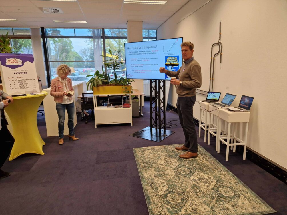 The rooms of the TU/e campus’ Disruptor building hosted keynotes, workshops, and pitches. Visitors could learn more about technologies set to, or aiming to, disrupt energy, smart mobility, and healthcare. With climate change knocking at our door, new disruptions are in need, the audience was told.