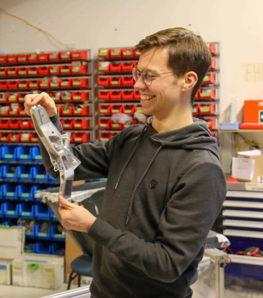 The road to Adelaide is long. The 3,000-kilometer race through Australia’s outback will not take place until October 2023. For the two mechanical engineers, within that entire trajectory, from new team to race, this very month is the most exciting. For the past six months, their work has mainly taken place behind the drawing board (or better: the laptop), but now the transition from design to production and testing is taking place. Both men are unanimous about this: “That moment when you actually have a part in your hands you have been working on for so long is the most beautiful thing there is. At the same time, this phase also means quite a lesson in patience. To produce the parts, Solar Team Twente is dependent on many sponsors, companies that produce these parts for them “for nothing,” and that means delays here and there in the production. This adds to the tension for the mechanical guys. They make grateful use of the resolving skills of the marketing and communications team, who maintain contact with companies. Sven: “Our account manager has a very fluent chat and gets everything done so that we can focus more on the technical side. That’s really nice.”