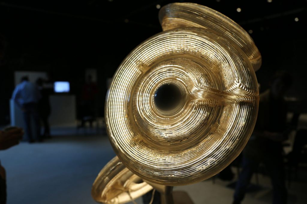 Jeroen Hol is one of the designers who have been approached by Julte to participate in the exhibition. What he designed as an assignment at the TU/e (industrial design), along with Bram Naus and Pepijn Verburg, is a music player with no real control, as a counterpart to all the things that are customisable nowadays. “It used to be that, when you walked into someone’s room, you could tell someone’s music taste by the albums in his collection. Now everyone listens to music through spotify, and you know, you don’t nail spotify on the wall. Olly is associated with your spotify account and when the disc in the center begins to turn, you can give it a swing. Because of this begins a certian song from your spotify history begins to play.”