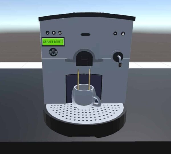 To assess MAUSI-VR, Harms used two different scenarios. In the first VR scenario, the user should fetch a cup and place it under a coffee machine. Then he should press a button to fill the cup. In the second scenario, the user had to copy a piece of paper.