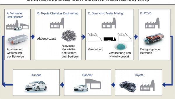 Even batteries that are no longer used in cars are able to, for example, serve as intermediate storage for electricity from renewable energies in order to store the excess electricity produced, (for example from wind power plants), and feed it back into the grid at a later time. At some point, however, the question arises as to what to do with dead lithium-ion batteries. At present, only about 50 percent of the batteries are recycled again whereby the lithium is elaborately extracted.