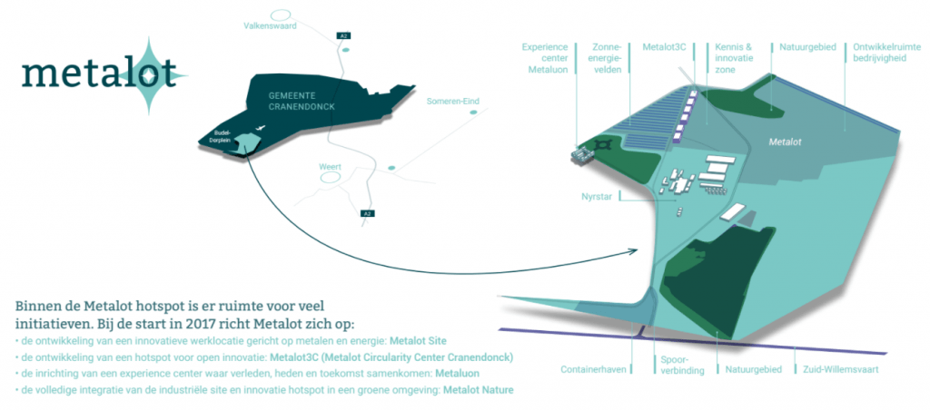 The province of Brabant wants to collaborate with four different parties from government, the commercial sector and knowledge institutes to work on innovating the Nyrstar-terrain in Budel-Dorplein. The group will work under the name of Metalot, which has the ambition to grow to become an international hotspot for innovation and circular use of metals and energy.