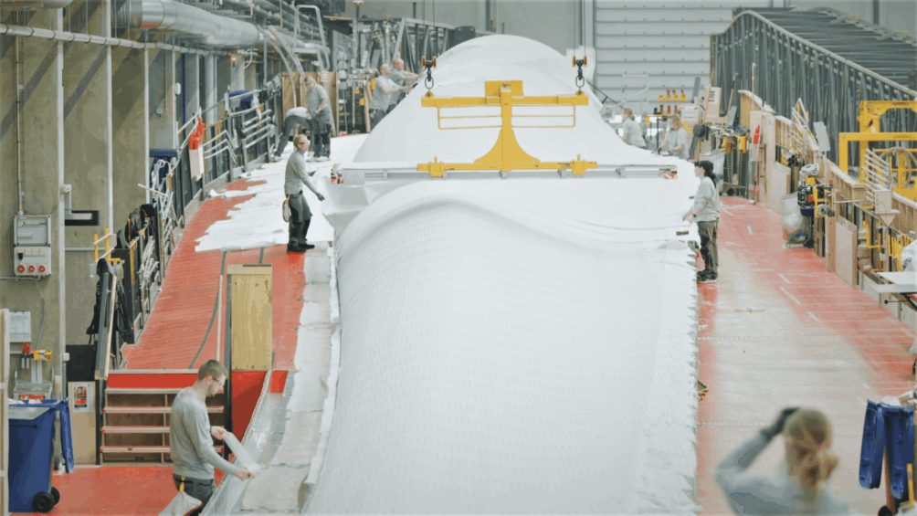 Wind blades have a relatively simple structure and few components. The so-called girder is the inner part. It is made of fiberglass and carbon, with resin coating. Two shells – also made of fiberglass – cover the girders. Then, shells and girders are assembled, passing through an oven to combine them into a single structure. Following an inspection, the blades are ready to reach their destination.