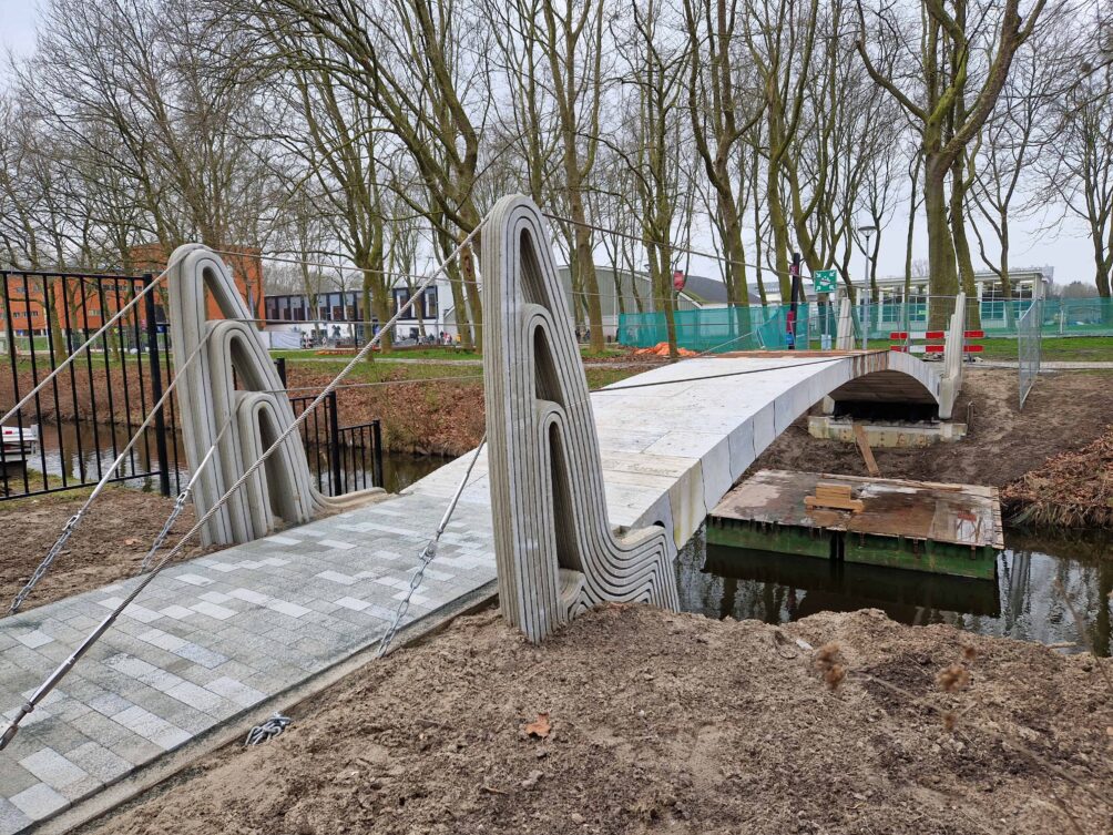 In telling the village’s story, Van Trigt underlines the uniqueness of the field lab, which has extra room to experiment. “Rules here are less strict to allow us to test things,” she explains. An example is a recently built circular bridge made with recycled concrete and porcelain. Such new materials are not (yet) allowed in real-life building projects.