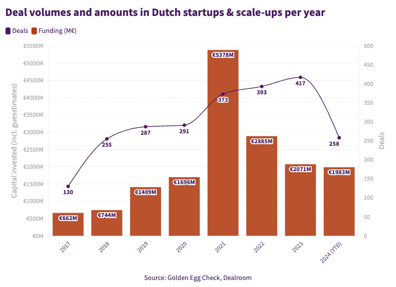 This is according to the latest figures from the Quarterly Startup Report, a quarterly data analysis by Dealroom.co, Golden Egg Check, KPMG, the Regional Development Companies (ROMs), the Dutch Association of Participation Companies (NVP), the Dutch Startup Association (DSA), and Techleap.