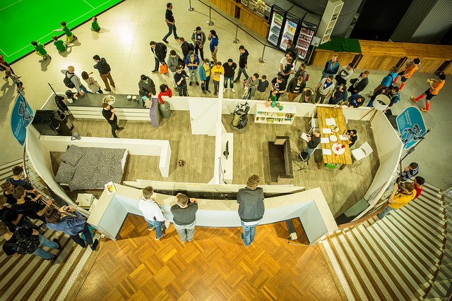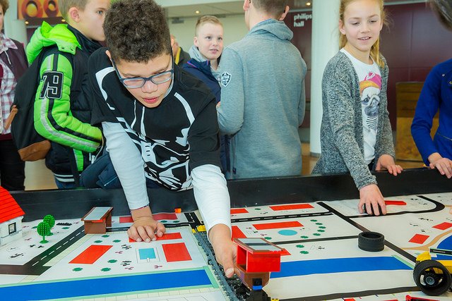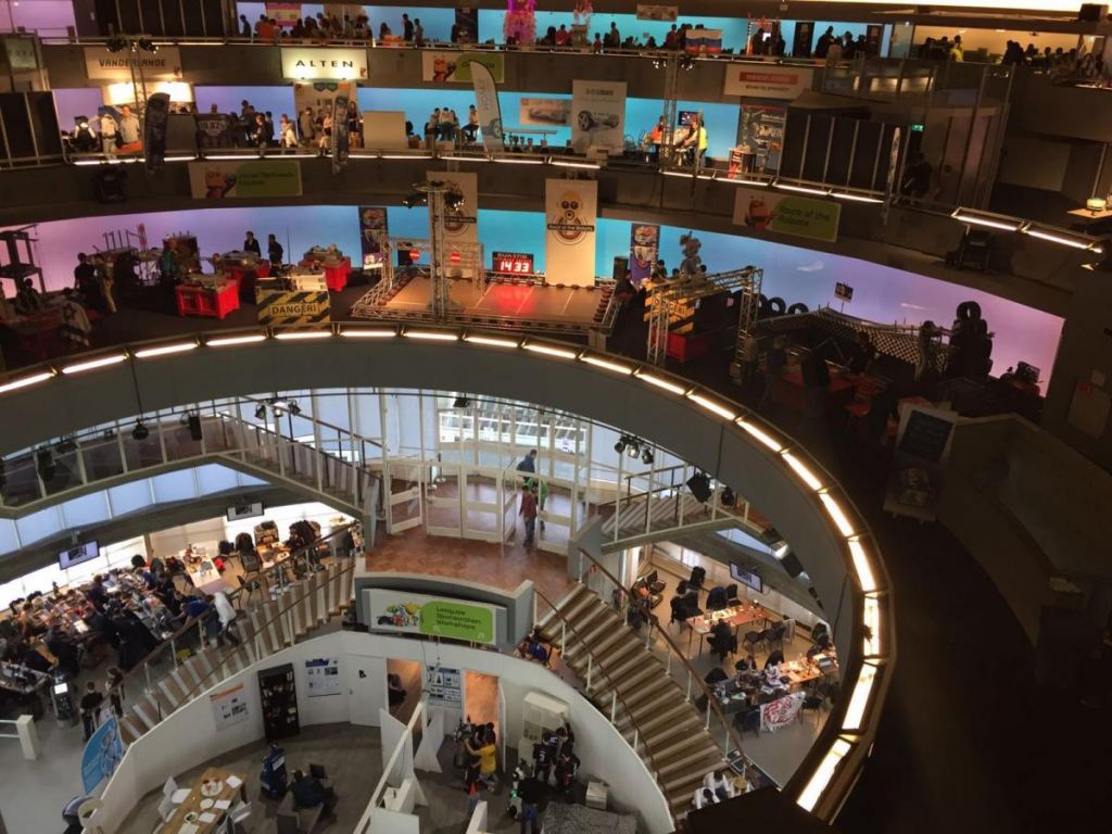 The workshops and demos that are located throughout the building, are still incredibly popular. They have even got some company today. The entry hall, in which Kolja Kugler’s music robots were already located, is now supplemented with even more music, made by the robot band of Team DARE. This band makes sure that the atmosphere in the Evoluon is good at all times, with their large repertoire, without any human interaction.