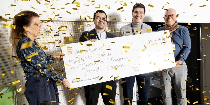 A total of nine startup projects competed for tonight’s awards. In addition to the first prize, a runner up prize of DKK 15,000 was given to the startup project Incider, which has developed a prototype for an intelligent apple cider brewing device that can be used in private homes. Tonight’s third prize, the audience’s favorite, of DKK 10,000 went to the startup project Høst, which has developed a concept for preserving fruit using UV radiation.