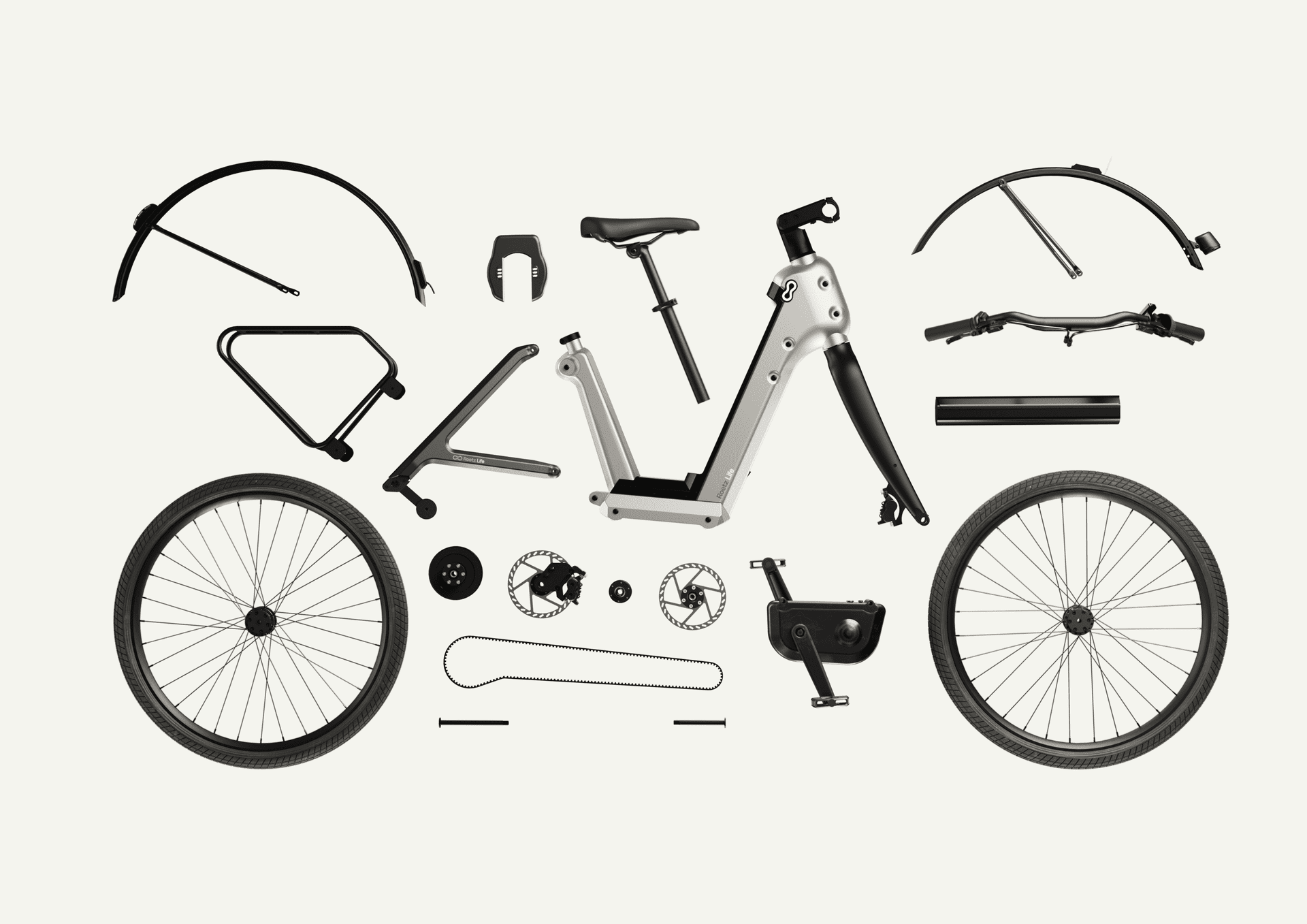 The first model of the Ref Bike, is a 1,200 euro city bike. The second model is a 2,500 euro electric version. By modifying two parts, French cyclists can switch from a city bike to an electric bike. Also in development are kits to a longtail bike (for transporting children) and a fatbike (for cycling in the dunes). Ref Bikes makes a commitment to itself to buy back old kits that are no longer used from consumers. In doing so, the company encourages the reuse of frames.