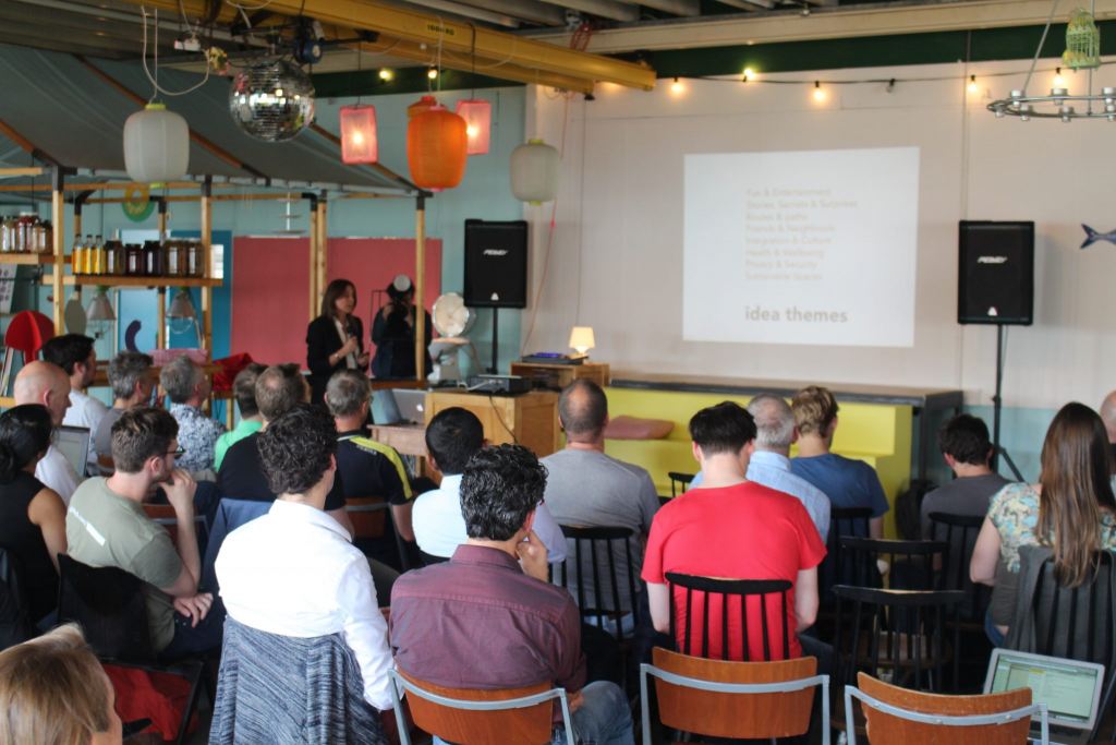 Again, it’s not about efficiency, but about sustainability and the quality of life, Goulden says. “We need more meetups, like the workshops in the Desighuis. The collision density between designers, developers and citizens has to grow further. That’s the way to become really smart.” To show part of what can be reached, Lorna Goulden sums up the results of today’s workshop. “We’ve been looking at a way to track bicycles, about geodata visualisation to find the best spots for – for example – yoga, and at ways to connect virtual reality in real reality. Oh, and how about the internet of ducks? A term used by one of the groups to form a community of people near a pond.”